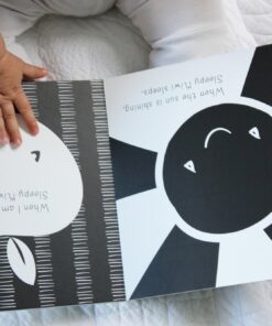 Matte laminated black and white board book with rounded corners.