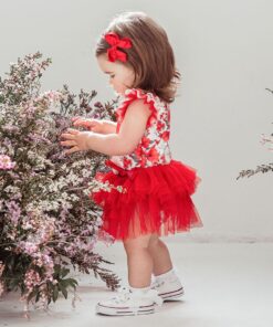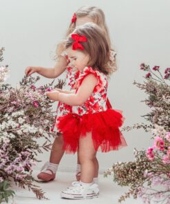 Soft cotton/elastane jersey and layered tulle tutu skirt, complimented by a satin bow at the waist. Perfect for your little princess’s next special occasion, birthday or party celebration. This print comes in “Big Girls Tutu’s” up to size 8, so you can do matchy matchy for some amazing memories.