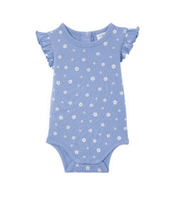 Super versatile and comfy, this go-to piece can take your little one from playdates to dress-ups with a simple switch-up of accessories.Soft blue bubbysuit with small white flowers