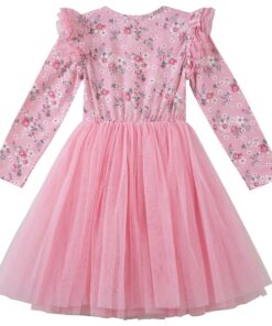 This stunning Floral Long Sleeve Tutu Dress, features a gorgeous floral print on soft cotton/elastane, with shoulder ruffle detail and a full tulle tutu skirt finished off with a satin bow ribbon at the waist. Don’t forget to pair it with the matching Floral Headband or Scrunchie, which can be purchased separately. Perfect for your princess’s next special occasion, birthday or party celebration.