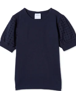 Navy Broderie Sleeve Tee