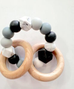 This rattle has the best of both worlds, the beech wooden ring provides something hard for your baby to chomp down on while the soft, silky smooth silicone beads massage and provide comfort for a teething baby’s sore gums and emerging teeth.